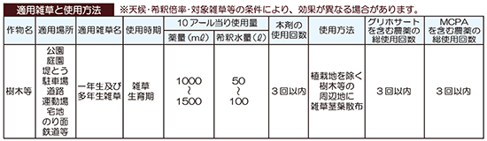 | 対象雑草 | 希釈倍率 |